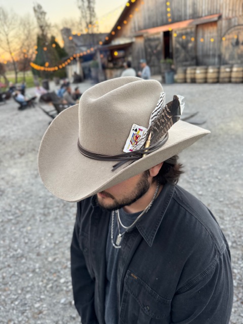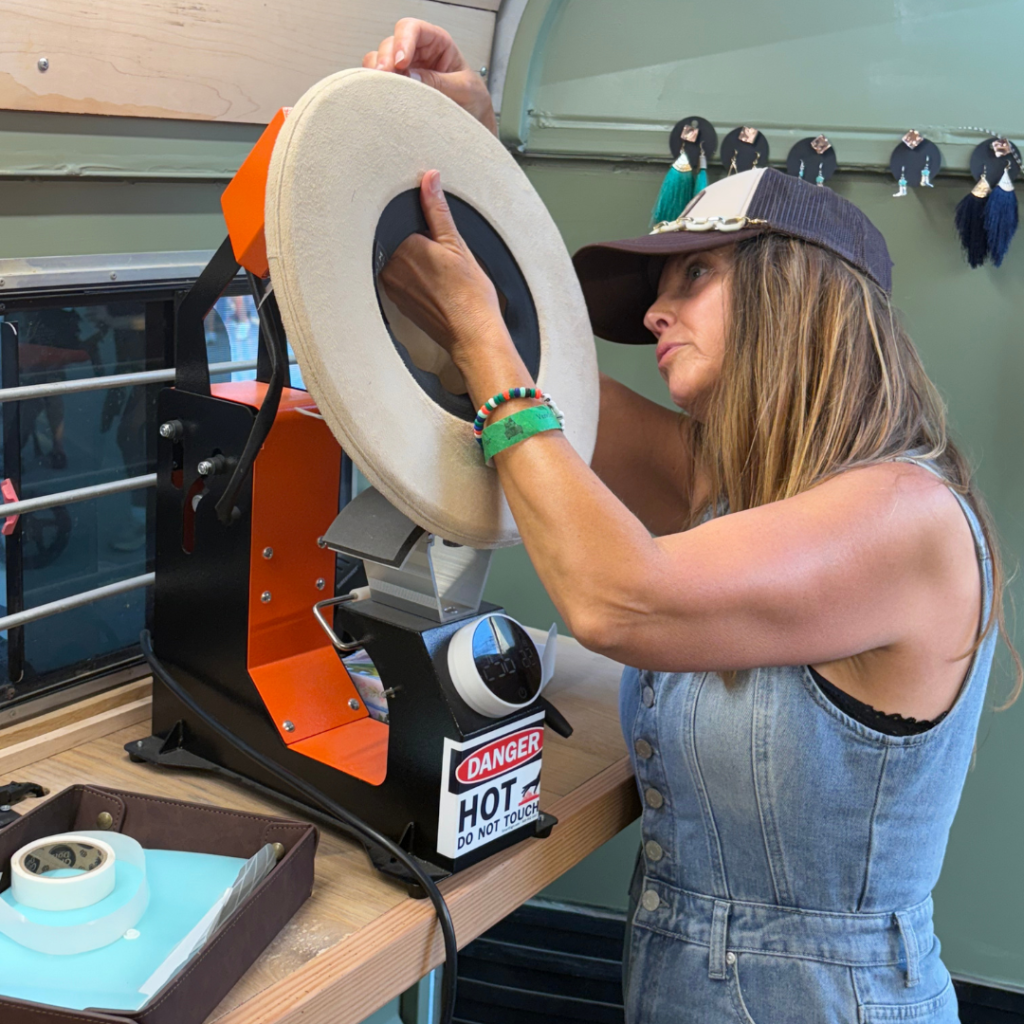 At The Custom Cowgirl, we’re cut from a different cloth. Bring craftsmanship to life—scorching, stitching, and feathering a blank brim—while you choose the details that turn a blank canvas into your signature.